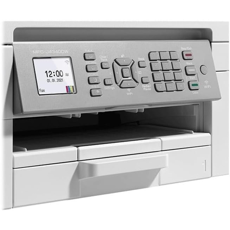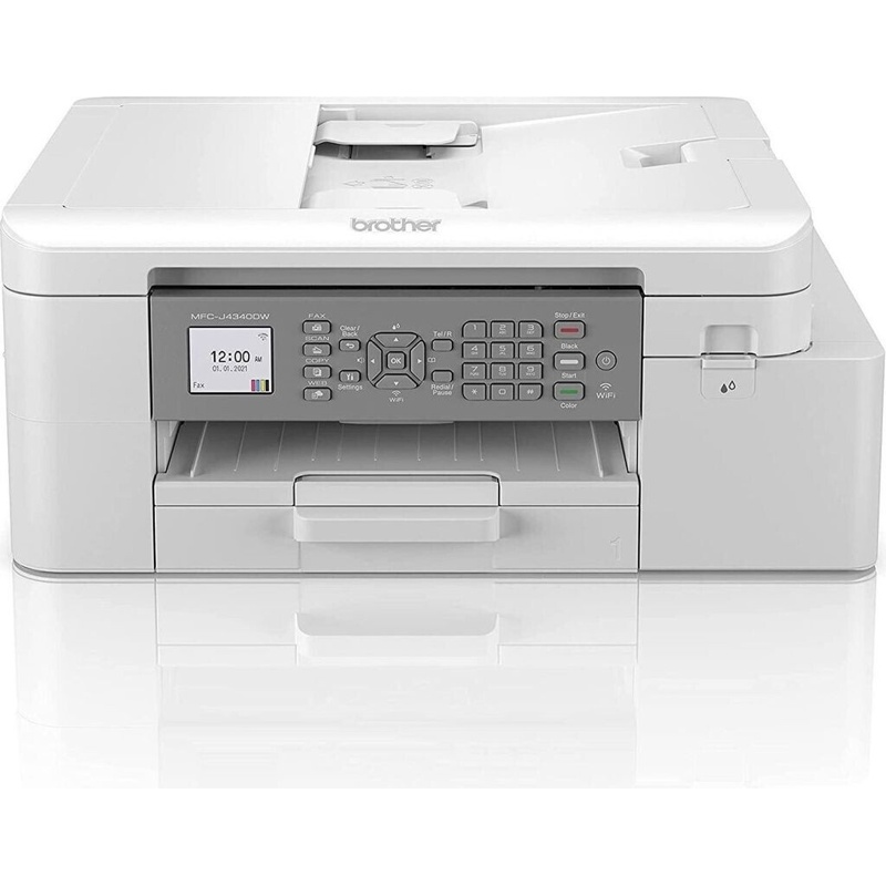 La Brother MFC-J4340DWE es una impresora multifunción de inyección de tinta con impresión, copia, escaneo y fax. Admite papel hasta tamaño A4 y cuenta con impresión automática a doble cara. Integra un alimentador automático de documentos de 20 hojas, una bandeja de entrada de 150 hojas y una pantalla LCD de 4,5 cm. La velocidad de impresión, según ISO/IEC 24734, es de hasta 20 ipm en negro y 19 ipm en color. Dispone de conexión Wi-Fi, Wi-Fi Direct y USB 2.0. Es compatible con Apple AirPrint, Mopria y Brother Mobile Connect para impresión y escaneo desde dispositivos móviles. Utiliza cartuchos de tinta independientes y admite consumibles Brother LC421 y LC421XL. Incluye funciones de copia y fax, además de escaneo de una o varias páginas mediante el alimentador automático.