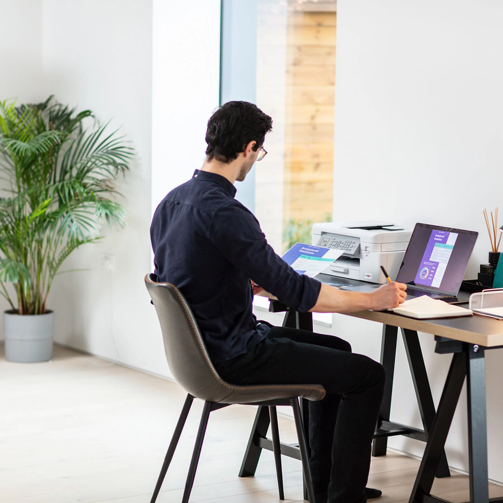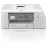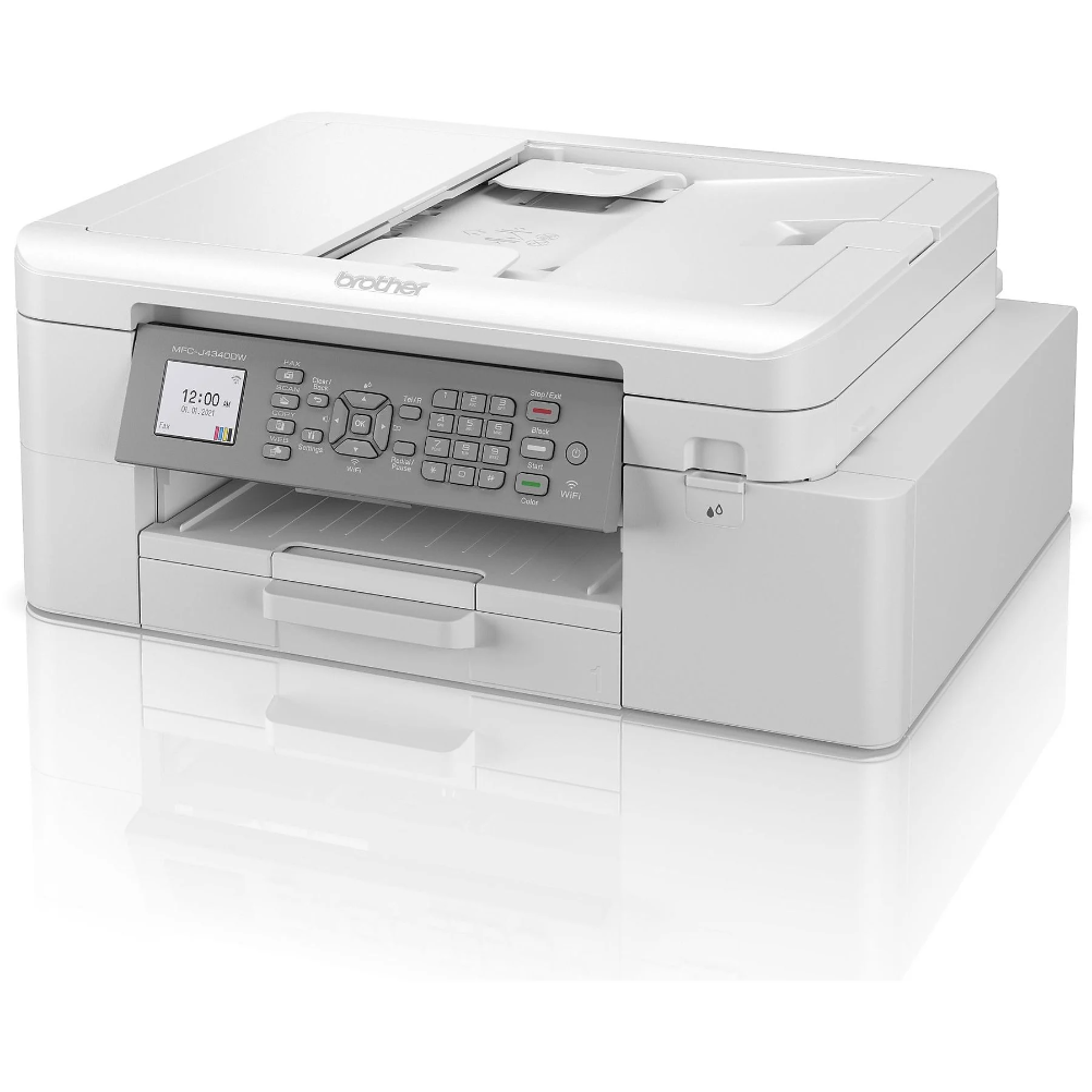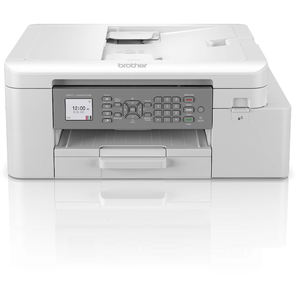 Brother MFC-J4340DWRE1 es un equipo multifunción de inyección de tinta con funciones de impresión, copia, escaneo y fax en formato A4. Incluye impresión automática a doble cara, alimentador automático de documentos de 20 hojas y bandeja de entrada de 150 hojas. La pantalla LCD de 4,5 cm muestra menús y ajustes del equipo. Conectividad: USB 2.0, Wi‑Fi y Wi‑Fi Direct. Compatibilidad con Apple AirPrint, Mopria y Brother Mobile Connect. Velocidad de impresión según ISO/IEC 24734: hasta 20 ipm en monocromo y hasta 19 ipm en color. Resolución de impresión: hasta 1200 x 4800 ppp. Resolución óptica de escaneo: hasta 1200 x 2400 ppp. Fax integrado con módem de 14,4 kb/s. Sistema de 4 cartuchos de tinta independientes. Formatos de papel compatibles: A4, A5, A6, Letter, sobres DL, Com-10 y C5. Tipos de soporte: papel normal, papel fotográfico, papel reciclado y sobres.