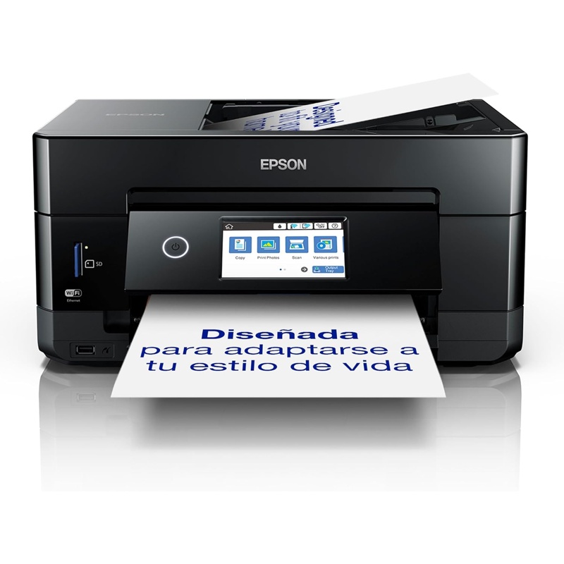 La Epson XP-7100 es una impresora multifunción de inyección de tinta con funciones de impresión, copia y escaneo en formato A4. Admite impresión en color y monocromo con sistema de 5 cartuchos independientes Claria Premium. Registra una velocidad de impresión de hasta 32 ppm según la especificación del modelo. Incorpora impresión automática a doble cara, alimentador automático de documentos de 30 hojas, bandeja frontal doble para papel y alimentación trasera para soportes especiales. La resolución máxima de impresión es de 5760 x 1440 dpi y la resolución óptica del escáner es de 1200 x 4800 dpi. Integra pantalla táctil de 10,9 cm, ranura para tarjetas SD y función de impresión directa en CD y DVD compatibles. Dispone de conexiones Wi‑Fi, Wi‑Fi Direct, Ethernet y USB, con compatibilidad con Apple AirPrint y servicios Epson Connect.