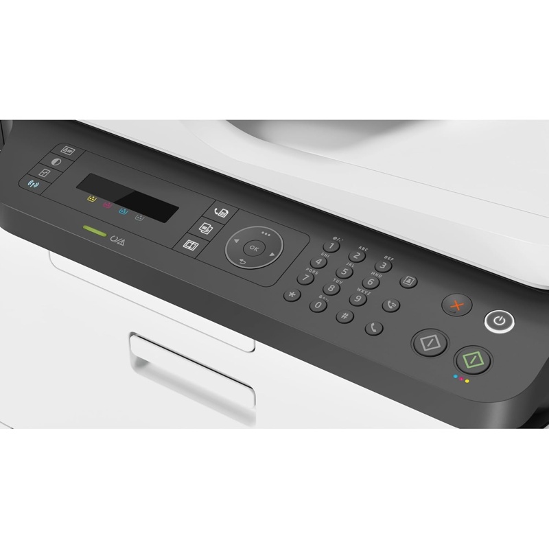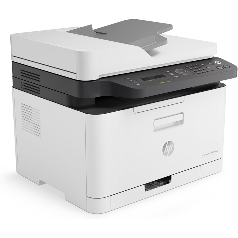 HP Color Laser MFP 179fnw es una impresora multifunción láser con impresión, copia, escaneo y fax. Utiliza impresión láser en color y monocromo, con velocidad de hasta 18 páginas por minuto en negro y hasta 4 páginas por minuto en color. La resolución de impresión es de hasta 600 x 600 ppp. El escáner incluye superficie plana y alimentador automático de documentos, con resolución óptica de hasta 600 x 600 ppp. El equipo incorpora alimentador automático de 40 hojas, bandeja de entrada de 150 hojas y bandeja de salida de 50 hojas. Dispone de pantalla LCD de 2 líneas, procesador de 800 MHz y memoria de 128 MB. Las opciones de conexión incluyen Wi-Fi 802.11b/g/n, Wi-Fi Direct, Ethernet 10/100 y USB 2.0. Es compatible con Apple AirPrint, Mopria y la aplicación HP Smart. Admite papel normal, sobres, etiquetas y cartulina en tamaños como A4, A5, A6, B5 y sobres. El modelo utiliza cartuchos HP 116A y unidad de imagen HP 120A.