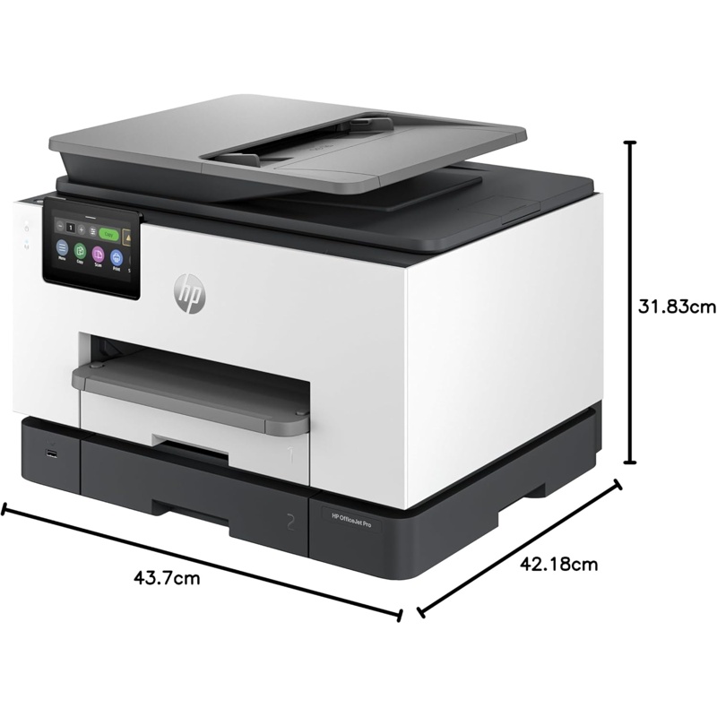 HP Pro 9135e es una impresora multifunción de inyección térmica de tinta con funciones de impresión, copia, escaneo y fax. Integra conexión Ethernet y velocidad de impresión de hasta 25 ppm. Admite impresión automática a doble cara y manejo de papel en formatos A4, A5, A6, B5, Carta, Oficio y sobres. El equipo incluye pantalla táctil para la navegación por menús, escáner de cama plana, alimentador automático de documentos y fax integrado. La resolución de escaneo alcanza hasta 1200 ppp y el ciclo de trabajo mensual llega hasta 30 000 páginas. También dispone de conexión USB y compatibilidad con protocolos de impresión móvil como Apple AirPrint y Mopria.