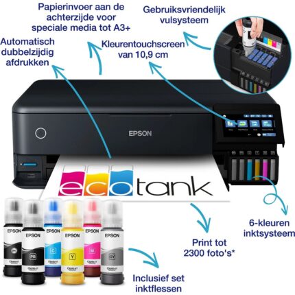 La Epson XP-15000 es una impresora de inyección de tinta con impresión en color, conectividad Wi-Fi y función dúplex. Admite